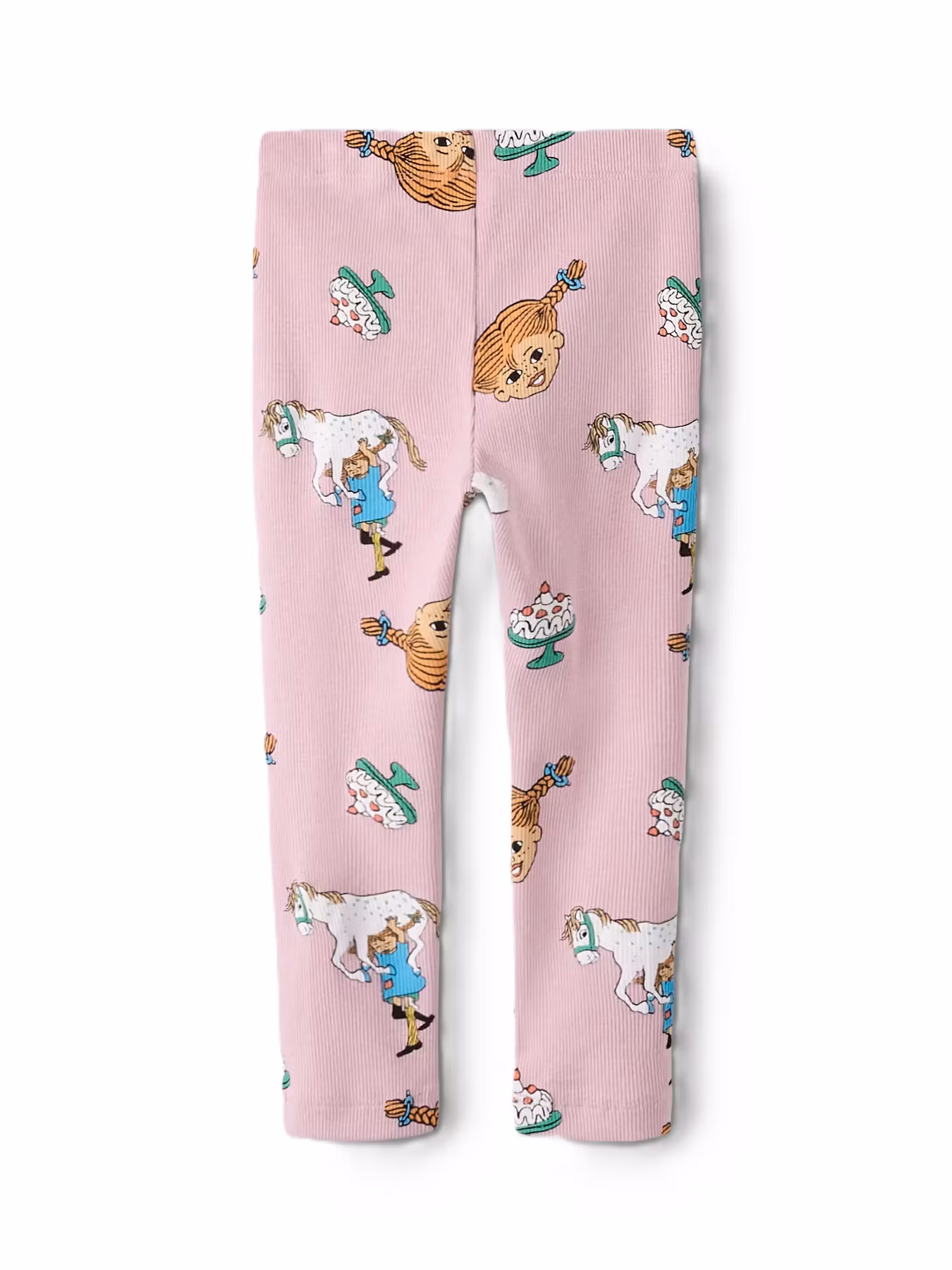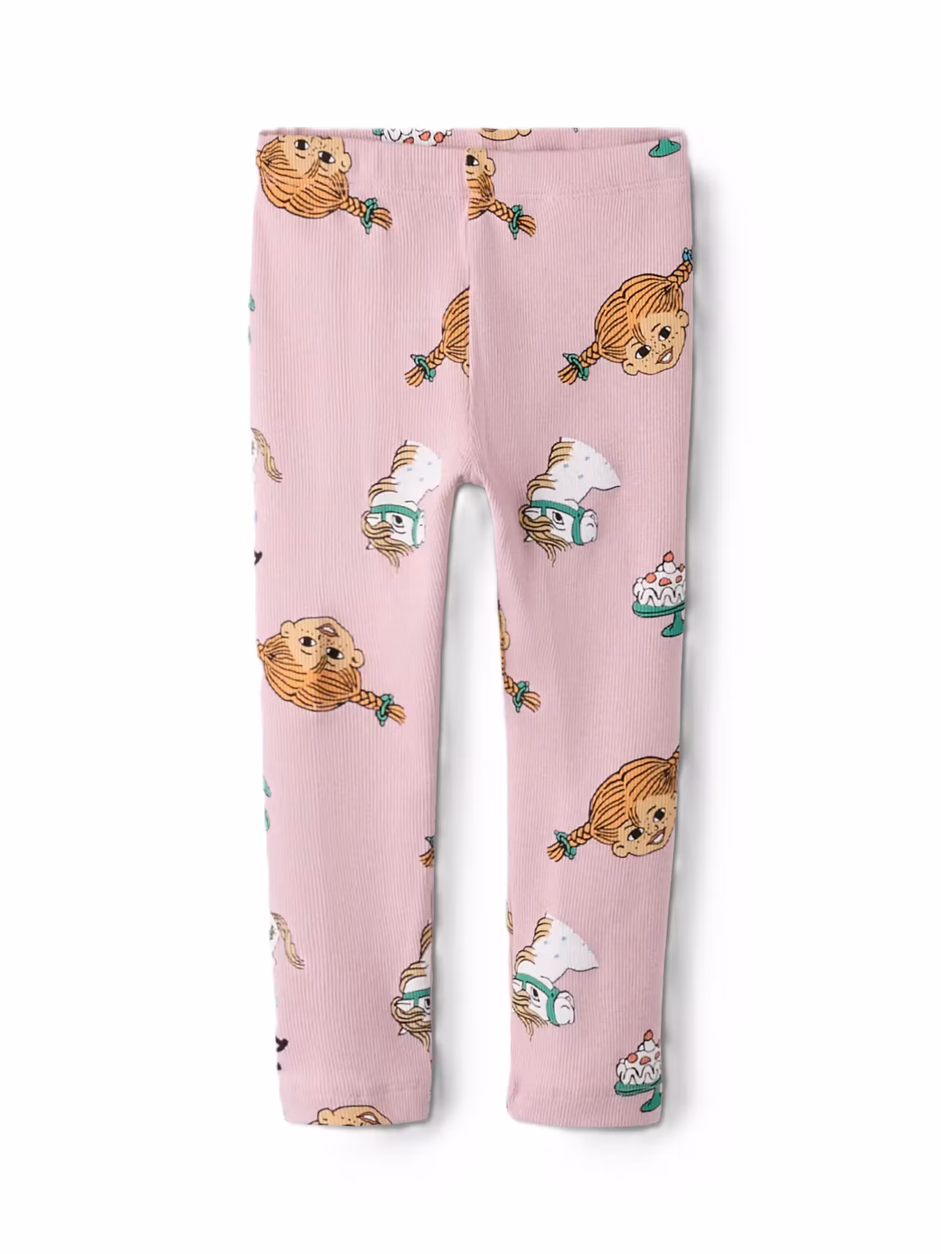 Lekfullt mönstrad byxa med Pippi, Lilla Gubben och tårtor.