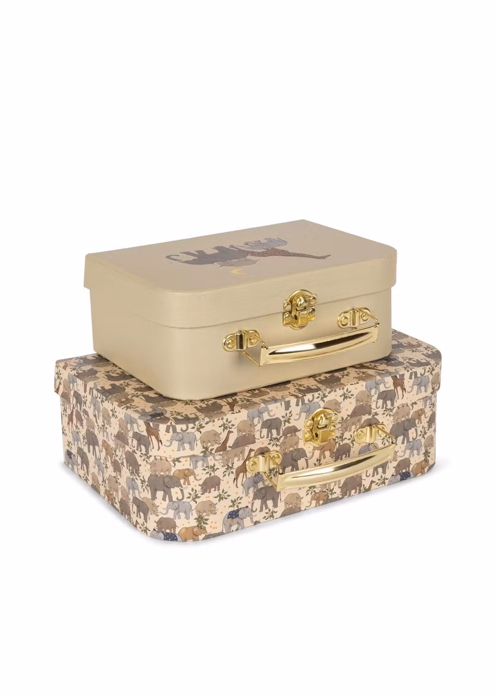 Söta resväskor i 2-pack från Konges Slöjd. Pappväskorna passar perfekt att packa leksaker i eller att ha på hyllan för förvaring.