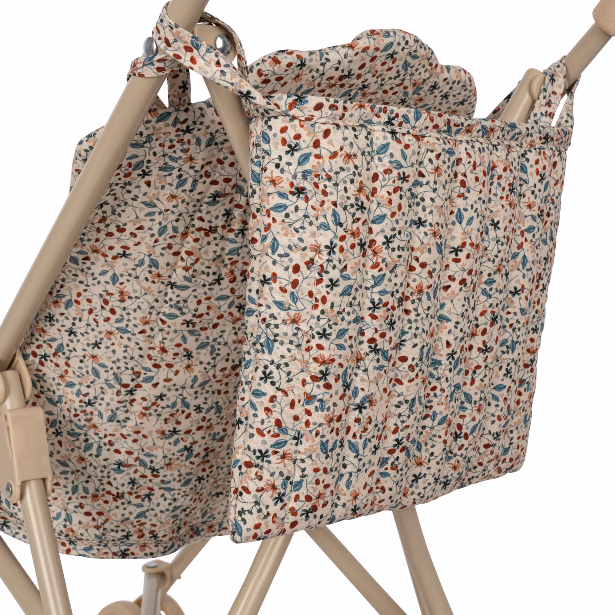 En liten Skötväska hänger på handtaget.