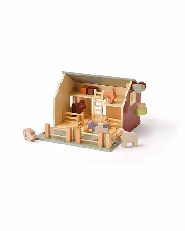 Bondgård i trä i två våningar med massor av lekfunktioner. Bondgården har en skjutdörr, fönster och energieffektiva solpaneler på taket för självförsörjande. Det främre taket är avtagbart och på andra sidan finns en blomsteräng för djuren att beta på. En vinsch med en magnetisk "krok" gör det möjligt att hissa upp höbalar på övervåningen. I bondgården ingår en stege och två staket. Bondgårds djur finns att köpa separat. Att leka med bondgården är både roligt och lärorikt för barn. Det stimulerar deras fantasi och kreativitet när de skapar egna berättelser och scenarier. Samtidigt lär de sig om djur och lantbruk, vilket ökar deras förståelse för naturen och livet på landet. Leken med bondgården utvecklar också finmotoriken genom att hantera skjutdörrarna, vinschen och alla djuren på gården. Bondgårdslek erbjuder en perfekt kombination av nöje och lärande och vi lovar timmar av fantasifull lek som även främjar sociala färdigheter när de leker tillsammans med andra.