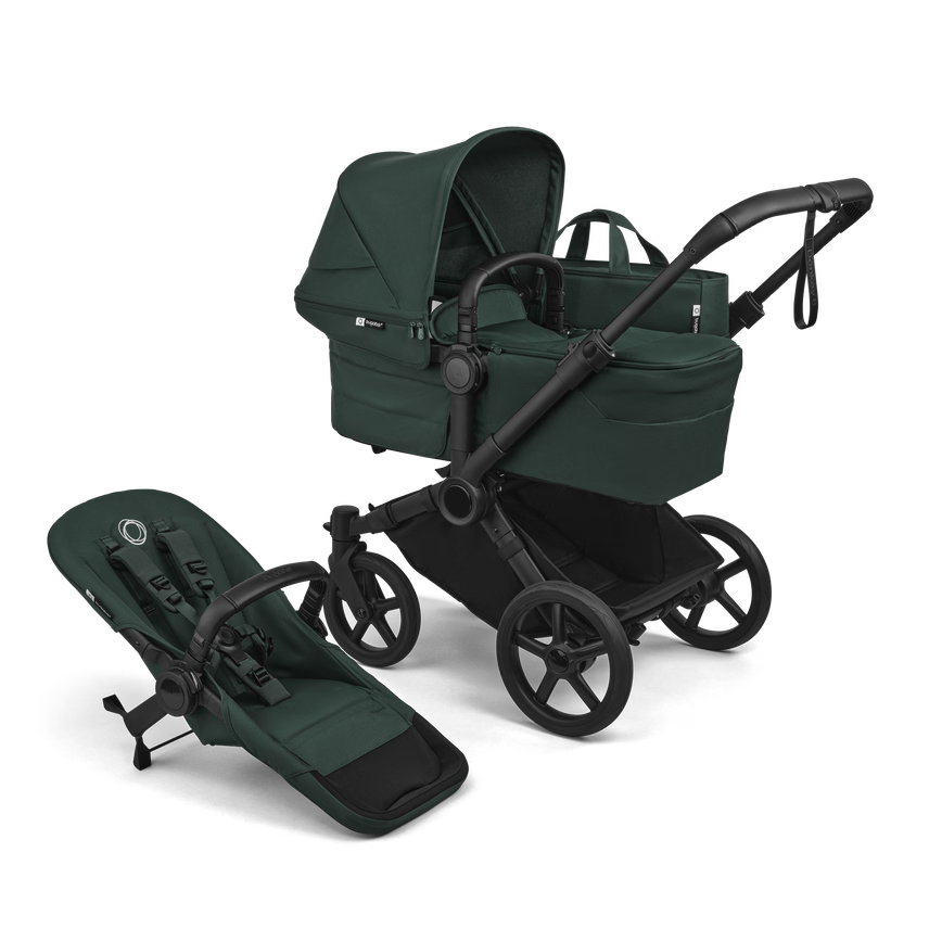 konvertibel från enkel till dubbel med bara tre klick när man sätter på extra syskonsittdel (säljs separat)